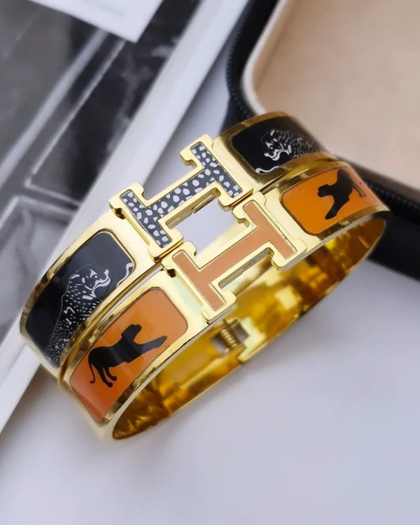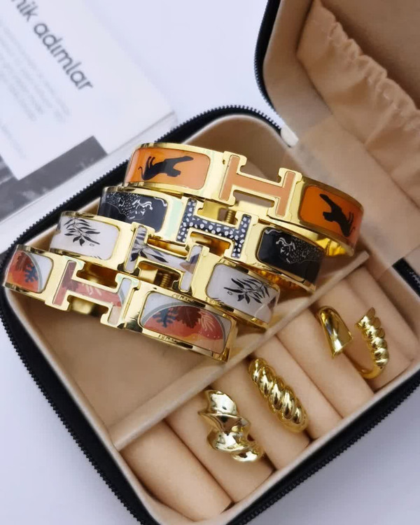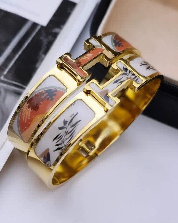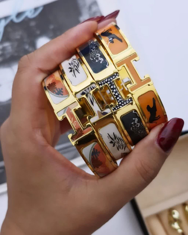 دستبندهایی با طراحی H — الهامگرفته از هنر و ظرافت مجموعهای خاص از دستبندهای استیل با روکش طلایی و طراحی نمادین حرف H، تلفیقی از زیبایی کلاسیک و هنر مدرن. هر دستبند با مینای رنگی و نقوشی از پرندگان، برگها و فرمهای انتزاعی تزئین شده که حس طبیعت، فرهنگ و خلاقیت را در کنار هم زنده میکند.