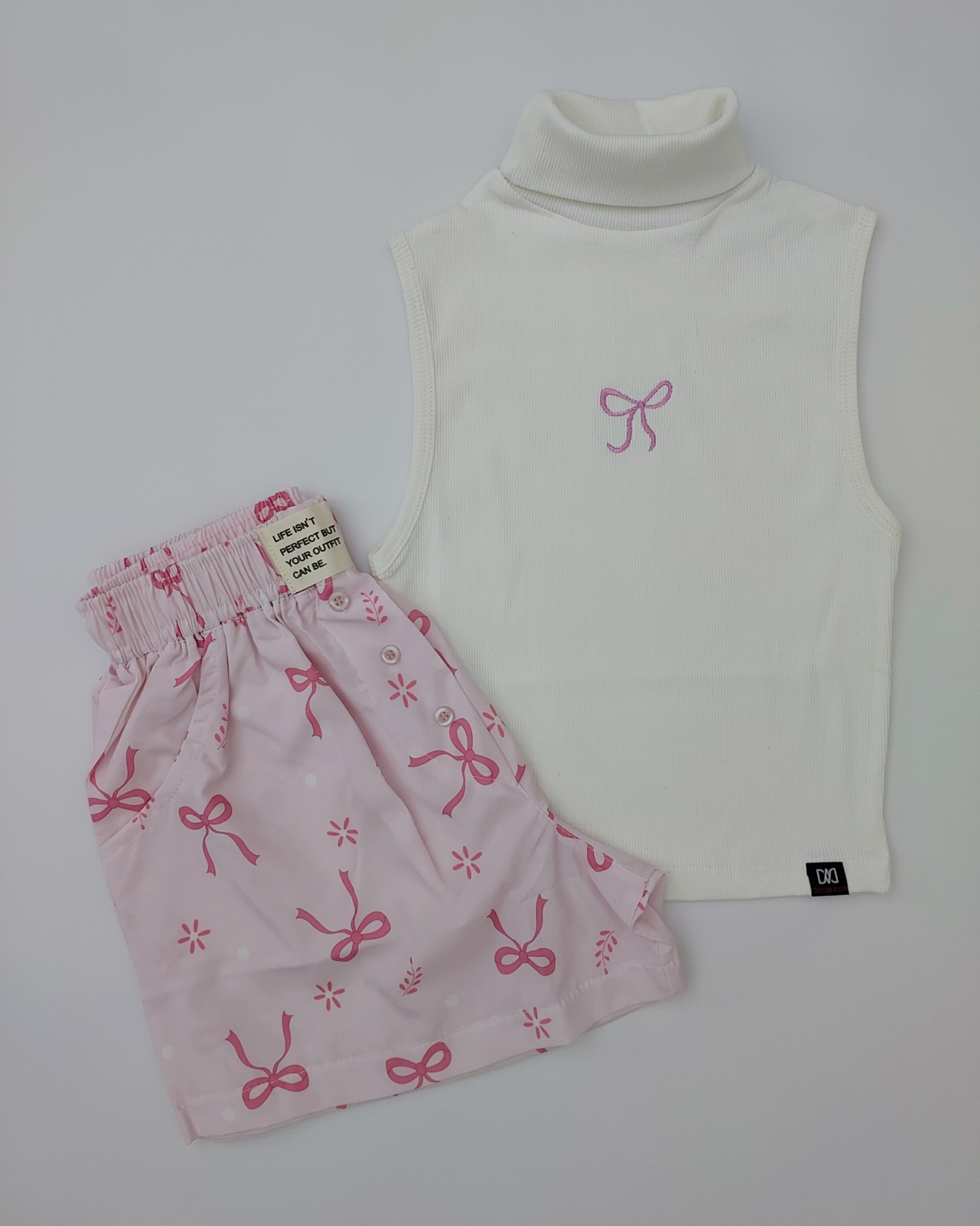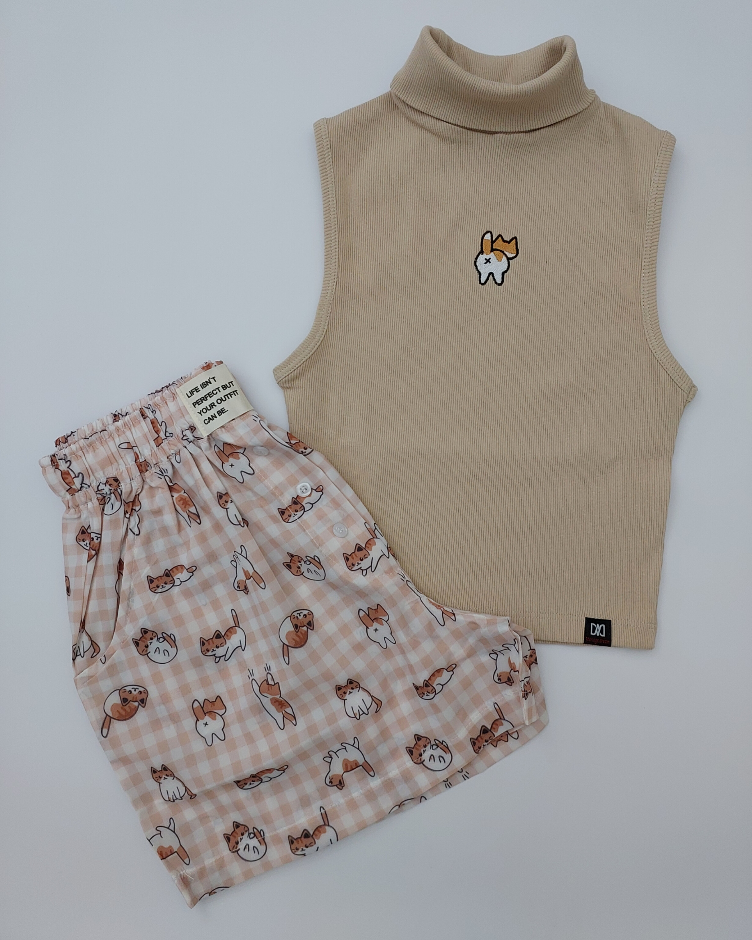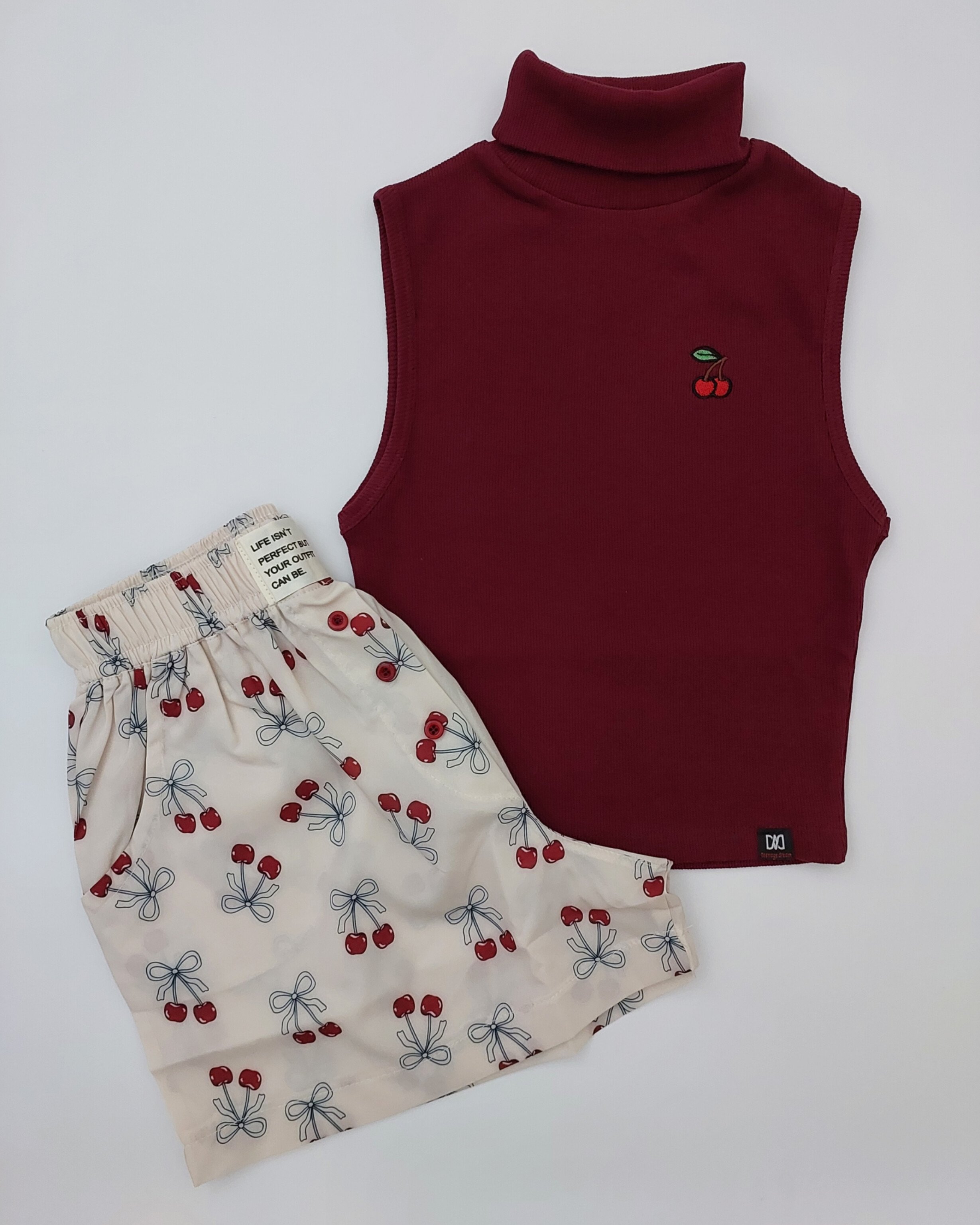 ست شلوارک و کراپ یقه اسکی با گلدوزی فانتزی